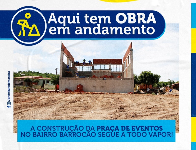 A prefeitura municipal de Manaira segue realizando os trabalhos de construção da Praça de Eventos Vice-Prefeito José Alves de Sousa no Bairro Barrocão.