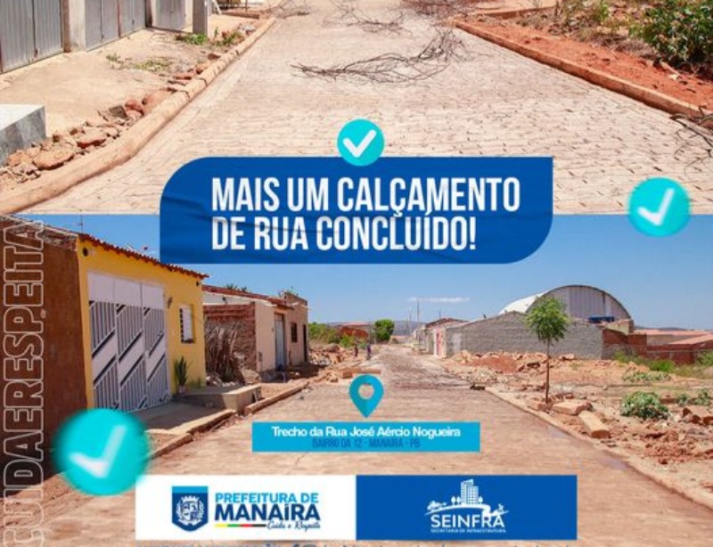 Mais um trecho urbano na cidade de Manaíra foi contemplado com construção de pavimentação em calçamento. O investimento feito pela Prefeitura Municipal contemplou os moradores da Rua José Aércio Nogueira.