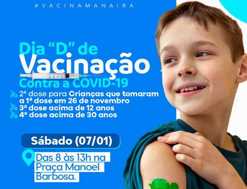 Fortalecer o trabalho de assistência em saúde e ampliar a cobertura vacinação contra a Covid-19. Esse é o objetivo da Secretaria de Saúde de Manaíra com a realização do Dia D de imunização que será realizado no próximo sábado (7) no município.